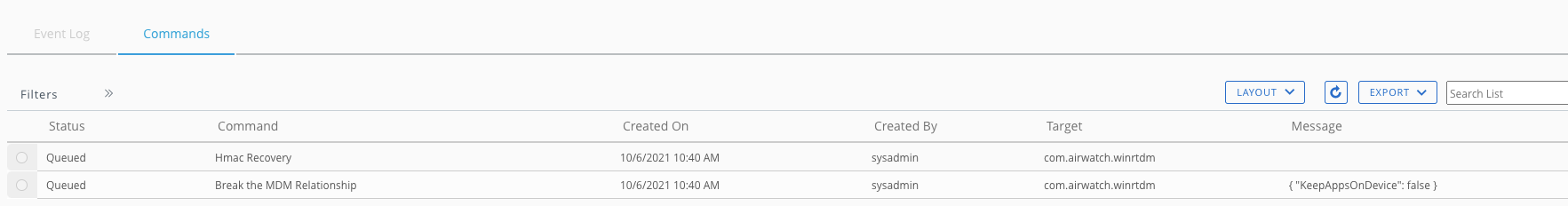 As we can see here, the “Break the MDM Relationship” command is queued.