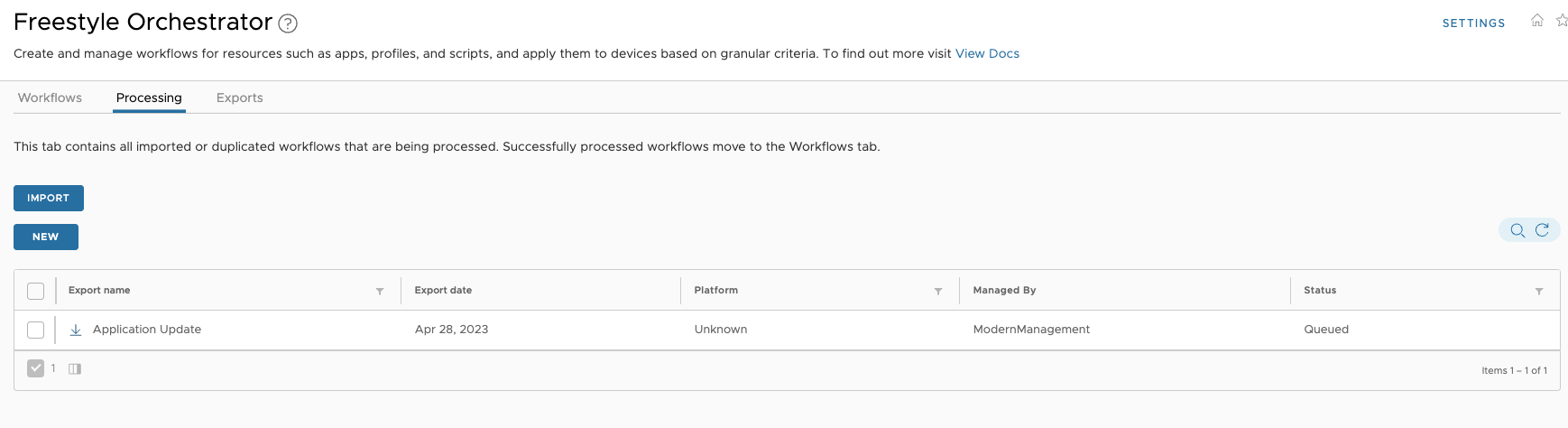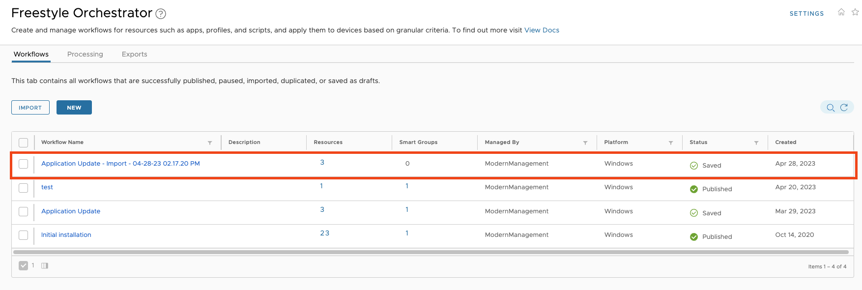 With the Workspace ONE UEM 23.02 release, we finally have the option to import and export Freestyle Orchestrator Workflows.