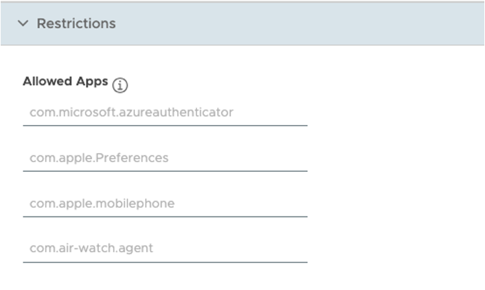 The ‘Allowed Apps’ policy in the Restriction Profile was used to display only the required applications, such as Hub and Authenticator.